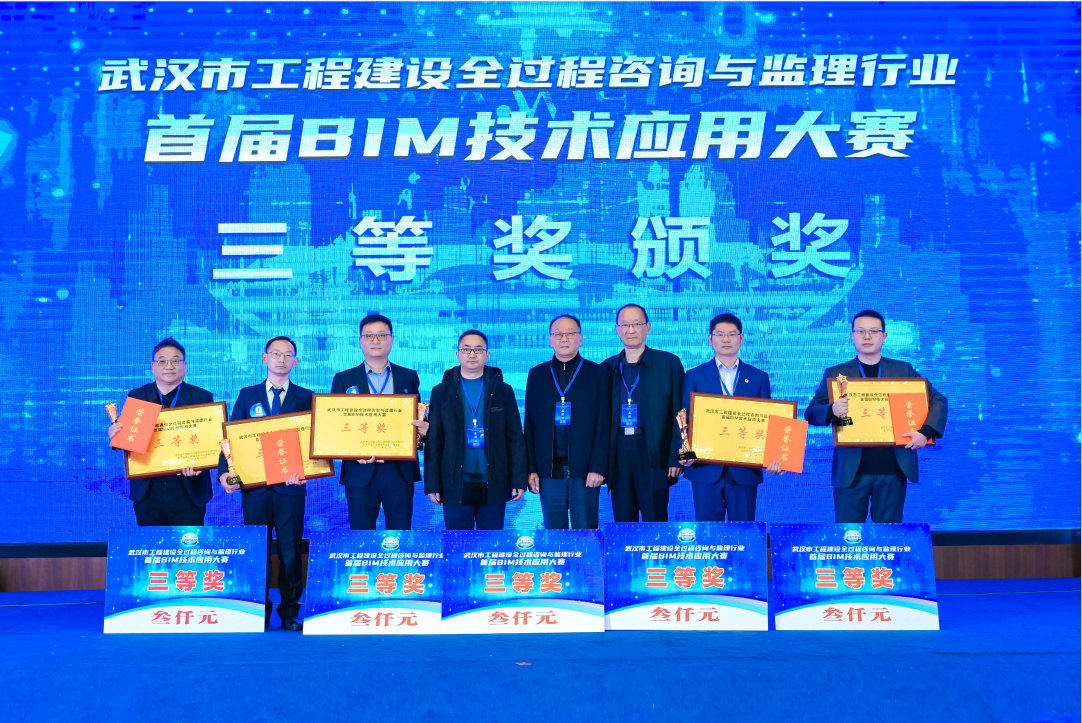 2023年12月15日由武漢市工程建設全過程咨詢與監理協會、武漢市總工會建筑行業工會聯合會共同舉辦的“首屆BIM技術應用大賽”圓滿落下帷幕。經過激烈角逐,我公司“新建湖北鄂州民用機場工程市政及綠化工程”榮獲大賽三等獎,“國家糧食現代物流(武漢)基地暨國家稻米交易中心冷凍產品加工一期項目”榮獲大賽優勝獎。
